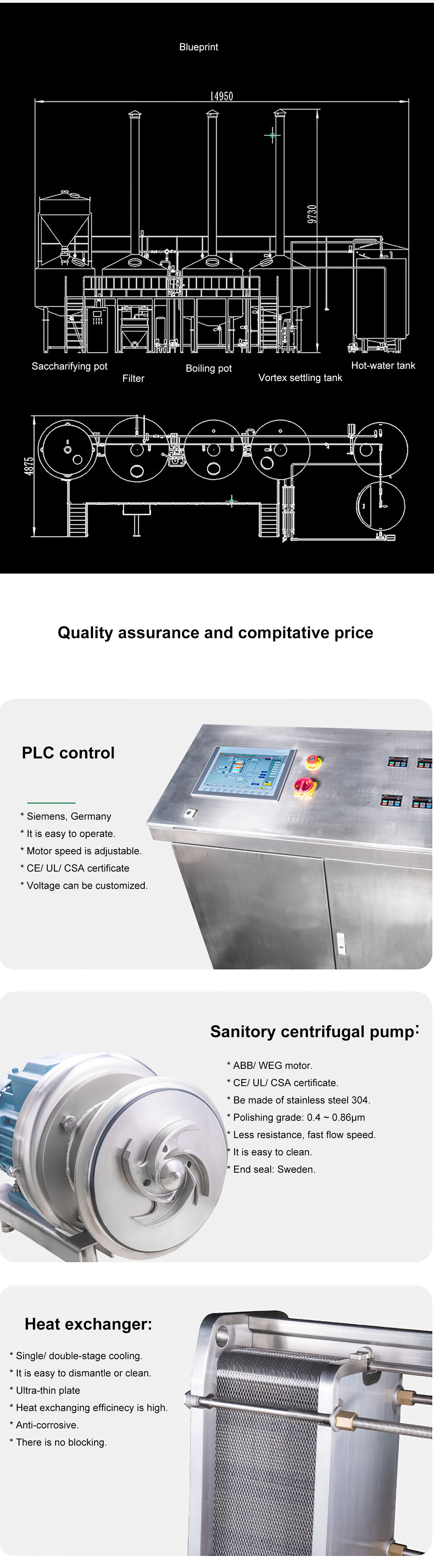 The brewery can be SUS304 or copper cladding in material, steam, electric or direct fire heating, two/three or four vessel