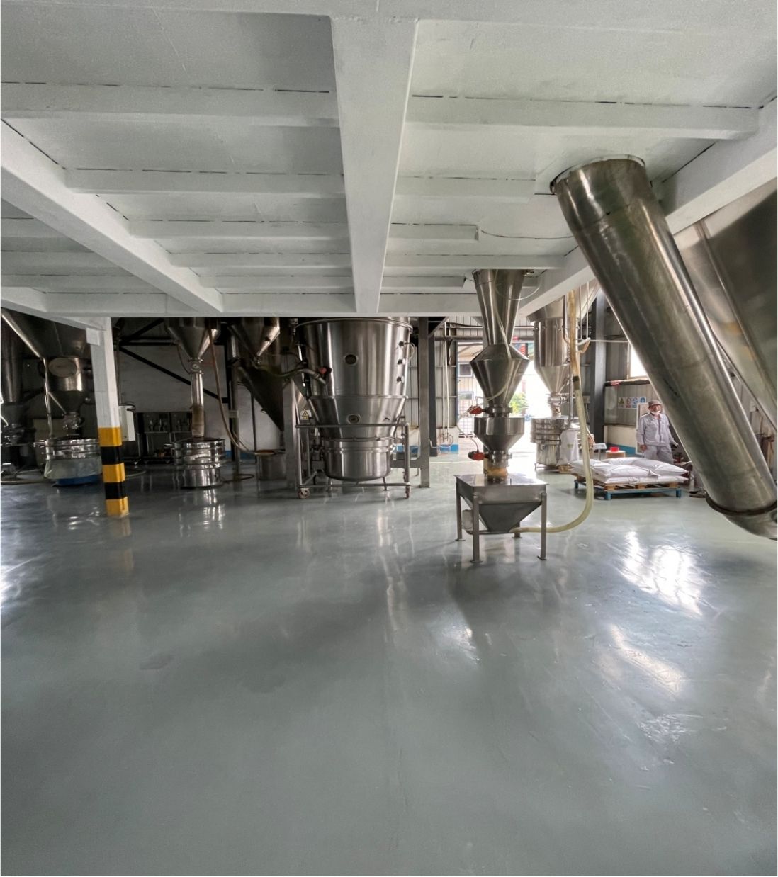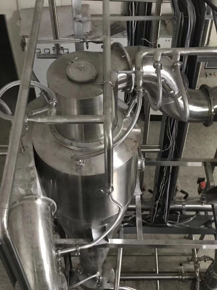 reactor, the temperature of the container wall is less than 80℃, and even the raw products are stayed on the wall, will not be burned. The powder rate is as high as more than 95%, and there is no powders mixing or wall hanging.