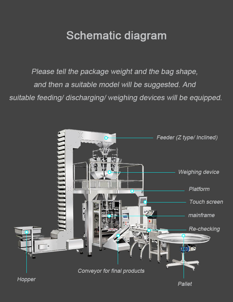 4. supported with metric device, the machine will automatically complete all packaging processes from measuring, feeding, filling, bag ma