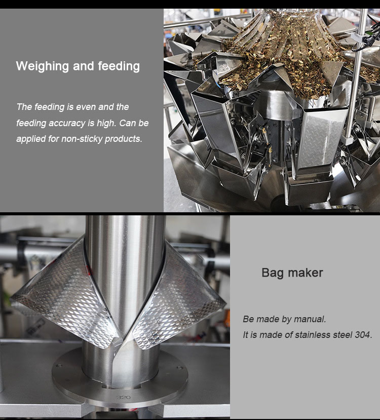 3.The machine and metering device can automatically complete the measurement, feeding, filling bag, date printing of all packaging process.